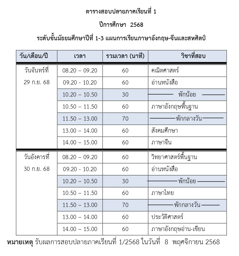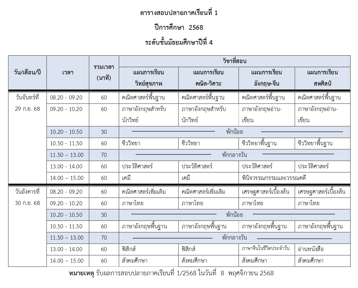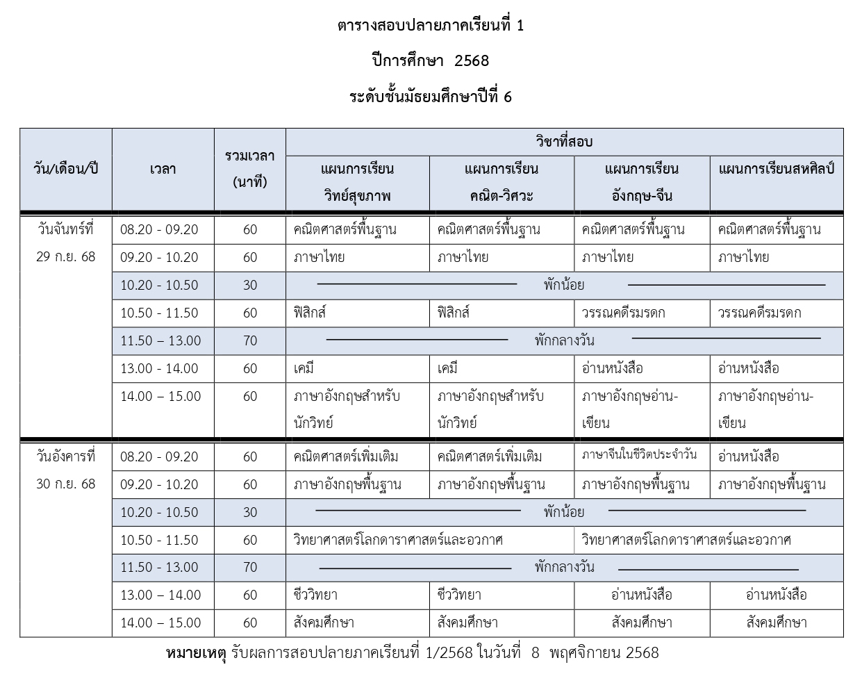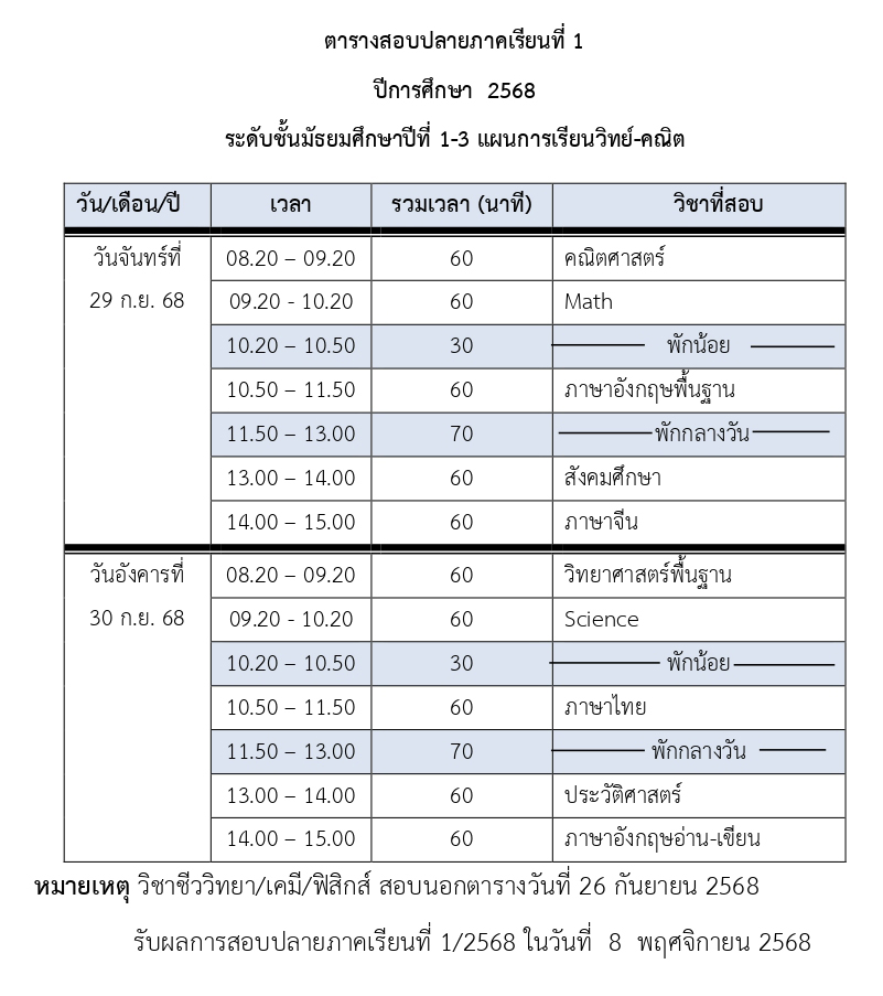 ตารางสอบปลายภาค ภาคเรียนที่ 1<< อ่านเพิ่มเติม >> 22/09/2025 by admin with no comment ข่าวประชาสัมพันธ์ ตารางสอบปลายภาค ภาคเรียนที่ 1 Previous Post รับสมัครนักเรียนใหม่ ปี 2568 ภาคเรียนที่ 2<< อ่านเพิ่มเติม >> Next Post พิธีลงนามบันทึกข้อตกลงความร่วมมือทางวิชาการ (MOU) กับวิทยาลัยเซนต์หลุยส์<< อ่านเพิ่มเติม >> admin